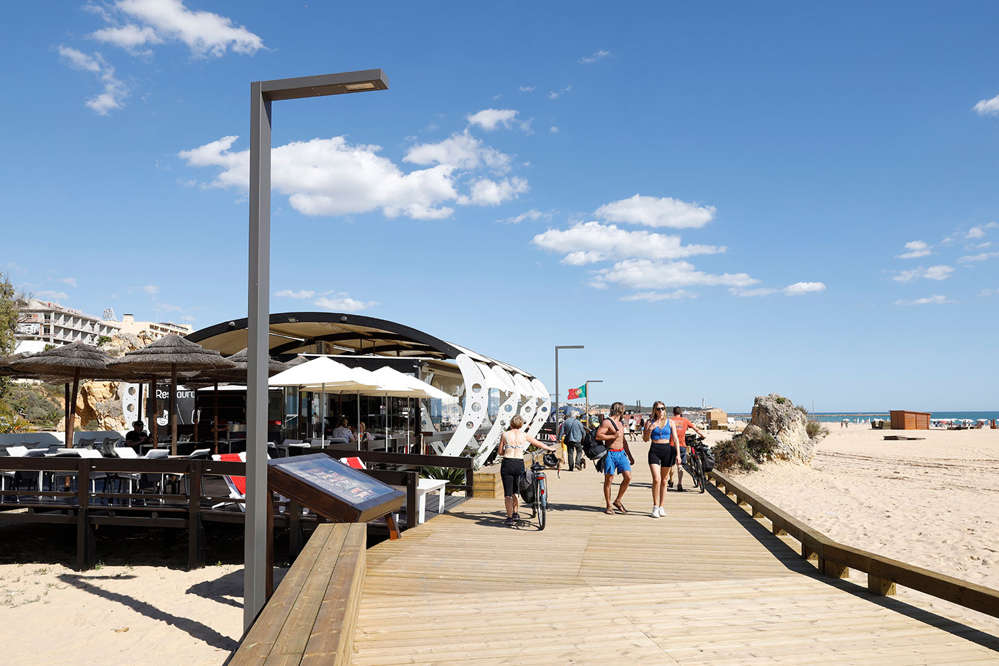 En 2006, la ville avait aménagé une longue promenade en bois le long de la côte de 1,5 km, offrant de nombreux avantages collectifs, sanitaires et économiques aux résidents et aux touristes. Joggeurs, cyclistes, skaters ou simples promeneurs : des usagers de tous âges peuvent l’emprunter en toute sécurité tout en admirant le panorama. Elle offre également un accès aisé aux restaurants et bars de la plage. En raison du climat maritime, la promenade s'était dégradée. En 2022, le conseil municipal de Portimão a décidé de rénover entièrement cette promenade de 1,5 km et ses accès en optant pour un revêtement dans une essence de bois plus résistante, adaptée aux conditions de bordure de mer.