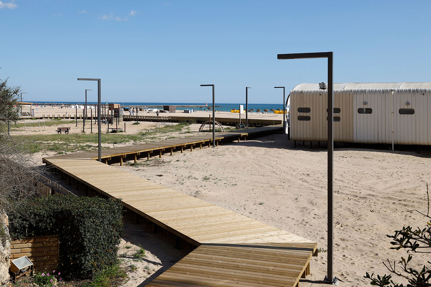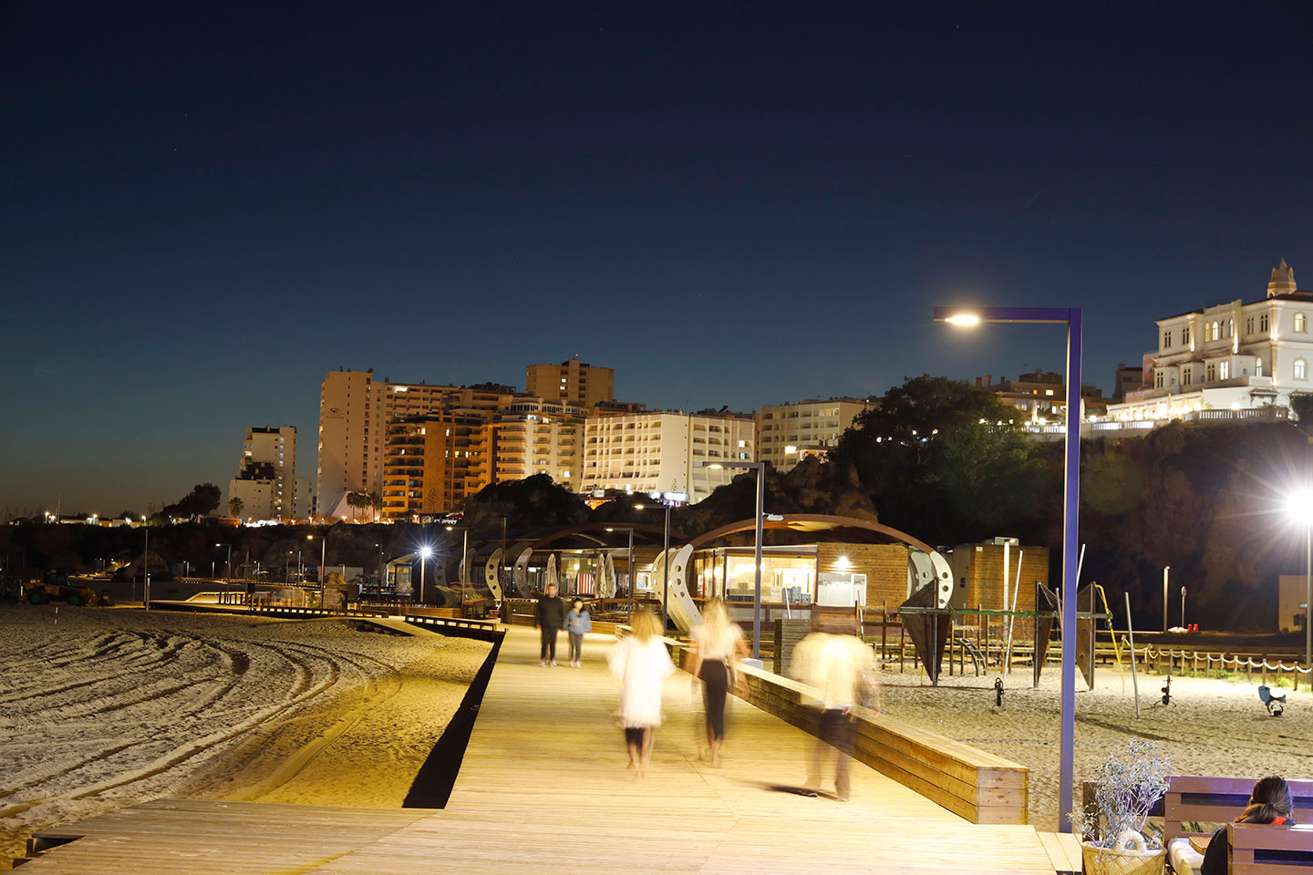 Un éclairage urbain à faible consommation contribue à un environnement nocturne sûr et accueillant pour les visiteurs de cette plage très fréquentée à la nuit tombée