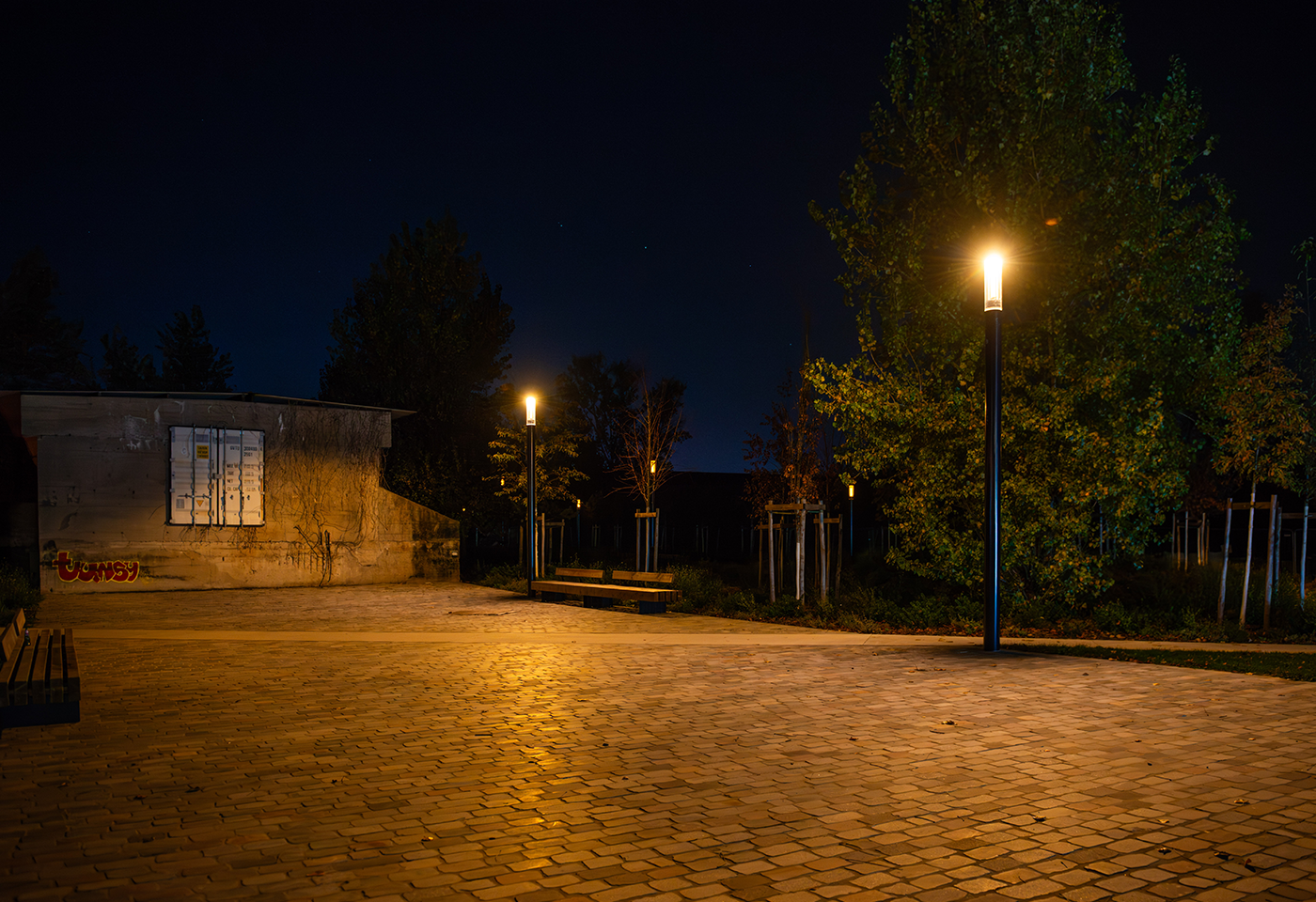 La lumière s’adapte ainsi au rythme réel du parc. Elle se fait discrète lorsque l’espace est vide, plus présente lorsqu’il est animé. Elle devient presque vivante, évoluant au fil des usages, conciliant sécurité, confort et sobriété énergétique.