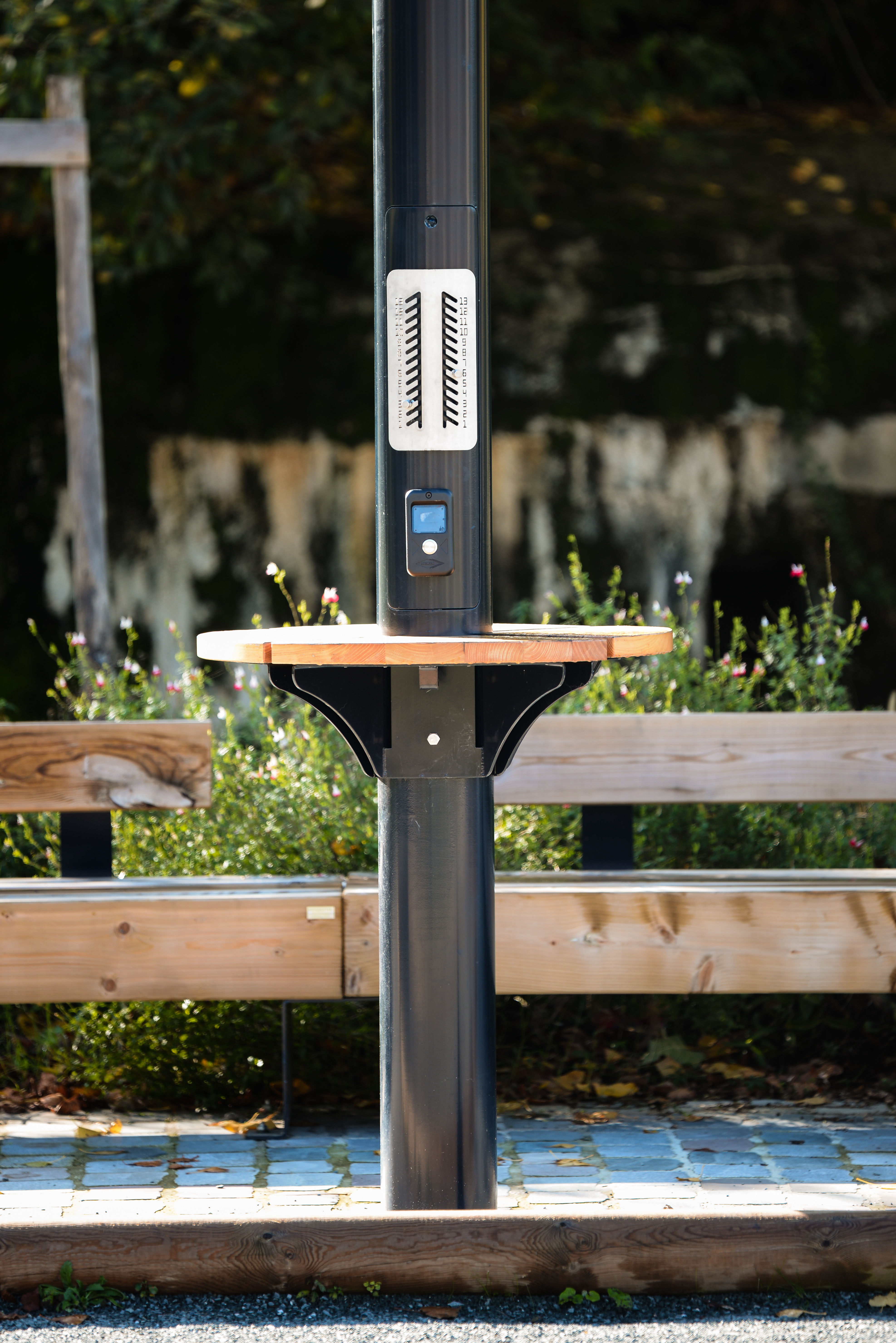Notre équipe Mâts et Consoles de Saint-Martin-la-Plaine (42) a conçu un support métallique entièrement sur mesure, capable d’accueillir une tablette en bois réalisée par un menuisier local. Dans la continuité de cette démarche, une structure métallique spécifique a également été développée pour intégrer des compteurs de points.